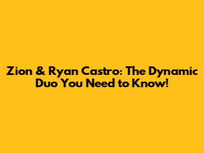 Zion & Ryan Castro: The Dynamic Duo You Need To Know!