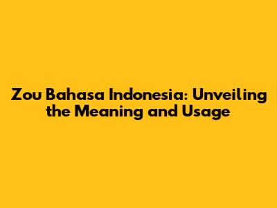 Zou Bahasa Indonesia: Your Guide To Understanding Zou